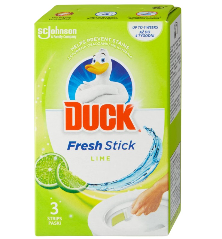 Skladem Duck Fresh Discs (2ks/kra) Limetka PeMi kód: 520325 EAN: 5000204608618, 5000204338928 WC gel Duck Fresh Discs limetka dokonale vyčistí Vaší toaletu a velmi spolehlivě ji ochrání před vodním kamenem . Stačí jednoduše aplikovat na vnitřní stěnu mísy a gelový disk Duck se chopí práce za vás. WC gel Duck Fresh provoní celou místnost limetkovou vůní 98 Kč Do košíku