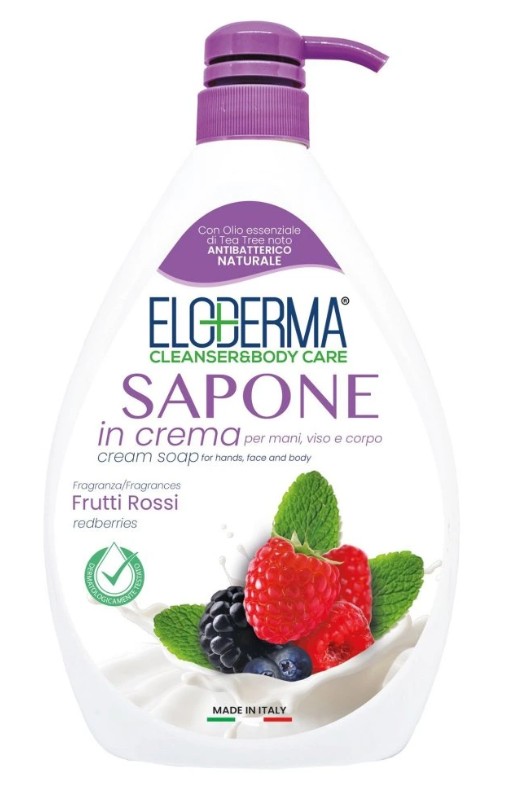 • MÝDLO NA RUCE ČERVENÉ OVOCE Čisticí krémové mýdlo s příjemně krémovou texturou, obohacené olejem z čajovníku Tea Tree. Vhodný pro citlivou pokožku, ideální pro každodenní hygienu. Jemně čistí ruce, obličej, tělo a zanechává pokožku zářivou, sametovou a příjemně vonící