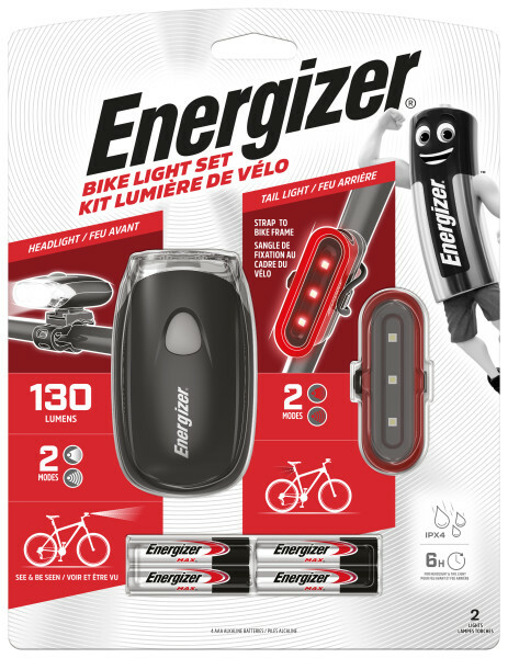 Skladem 1 ks. Energizer přední a zadní světlo na kolo, 4x AAA PeMi kód: 733081 EAN: 7638900439182 Přední a zadní svítilna na kolo Energizer Bike Light Set Kit s bateriemi Energizer AAA, ideální jako světlo na silniční kolo nebo horské kolo. - jasné přední světlo vyzařuje 130 lm až 6 hodin - zadní světla s 220stupňovým poloměrem světelného výkonu umožňují viditelnost z více úhlů 229 Kč Do košíku