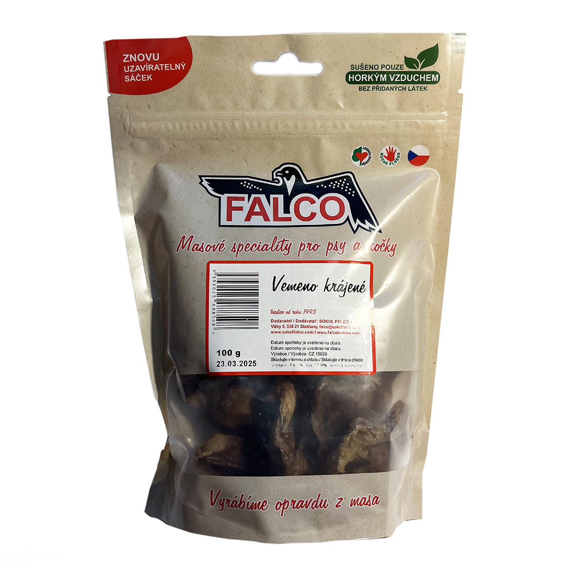 Skladem Vemeno sušené krájené 100g PeMi kód: 724895 EAN: 8594025088508 Veškeré sušené masové pochoutky jsou sušeny pouze horkým vzduchem bez přidaných látek, není použita žádná chemie. K sušení se používá moderní technologie pro uchování velkého množství vitamínů. Jsou vhodné pro každodenní konzumaci nebo jen jako pamlsek pro zpestření stravy 64 Kč Do košíku