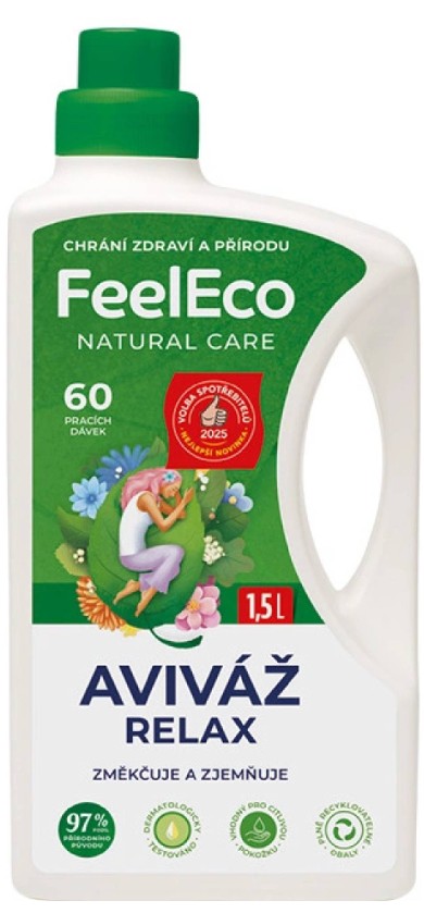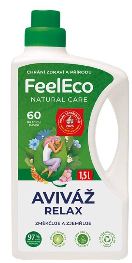 • Avivážní prostředek, který prádlo provoní příjemnou relaxační vůní, změkčí jej, odstraní nepříjemnou statickou elektřinu a bude se tak snadněji žehlit. Vůně je vybírána s minimálním obsahem alergenů. Použitím aviváže FeelEco RELAX spolu s ostatními pracími prostředky FeelEco zajistíte