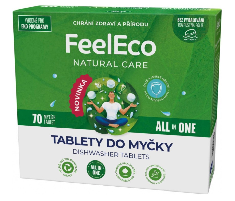 • Čisté a lesklé nádobí zajistí již od prvního mytí, bez předmývání a s úsporou vody a energie. Neobsahují konzervanty, fosfonáty, ani parfémy. Nezanechávají na nádobí nepříjemný zápach. Tablety jsou baleny do voděrozpustné fólie a není tedy nutné je před použitím vybalovat.