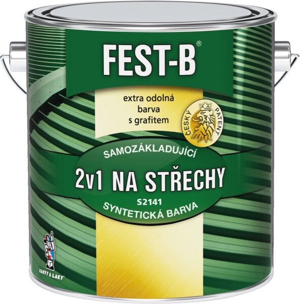 Skladem FEST-B S2141, antikorozní nátěr na železo, 0155 antracit, 2,5 kg PeMi kód: 616698 EAN: 8591235094381 Barva je určena zejména k jednovrstvým venkovním ochranným nátěrům plechových střešních krytin, okapů, ocelových konstrukcí a dalších kovových předmětů vystavených trvalému působení povětrnostních vlivů a slunečního záření 836 Kč Do košíku