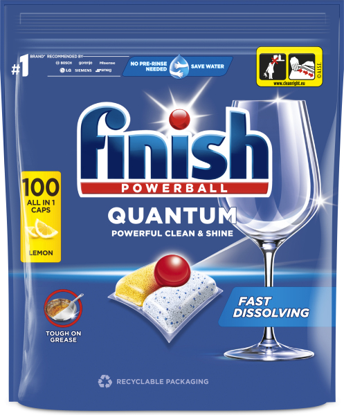 Skladem Finish Quantum Max 72ks PeMi kód: 585517 EAN: 5900627073331, 5908252004904 Finish PowerBall Quantum Max si poradí se vším, co mu přijde do cesty. Jeho účinné složení s PowerBall odstraní i připečené jídlo, abyste vždy dosáhli nejlepšího výsledku napoprvé. V porovnání s tabletami Finish All in 1 Max je dosaženo lepší čistoty a lesku 389 Kč Do košíku