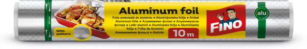 • Fino alobal, šířka 29 cm, síla alobalu 10,5 µ, délka 20 m Extra silný alobal vhodný pro balení potravin i využití při přípravě pokrmů. Složení alobalu je z hliníku, alobal je extra silný 10,5 mikronů. Šířka alobalu 29 cm a délka 20 metrů
