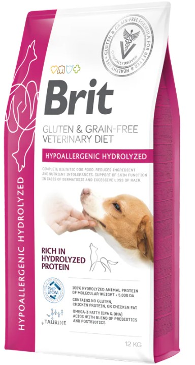 Skladem Brit VD Dog GF Hypoallergenic Hydrolyzed 12kg PeMi kód: 730582 EAN: 8595602573608 Kompletní dietní krmivo pro psy. Omezení intolerance určitých komponentů a živin. Podpora funkce kůže v případě dermatózy a nadměrné ztráty srsti. Indikace: Potravinové alergie s dermatologickými nebo gastrointestinálními příznaky Potravinová intolerance Zánět 3 506 Kč Do košíku