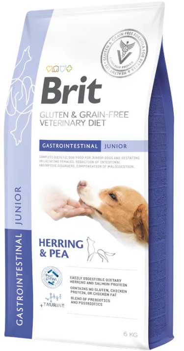 Skladem Brit VD Dog GF Gastrointestinal Junior 6kg PeMi kód: 730587 EAN: 8595602573691 Kompletní dietní krmivo pro mladé psy a březí nebo kojící feny. Omezení střevních resorpčních onemocnění; kompenzace maldigesce. Indikace: Úleva od zažívacích obtíží při akutní gastroenteritidě Podpora léčby chronických gastroenteropatií Zlepšení kvality stolice a 1 719 Kč Do košíku