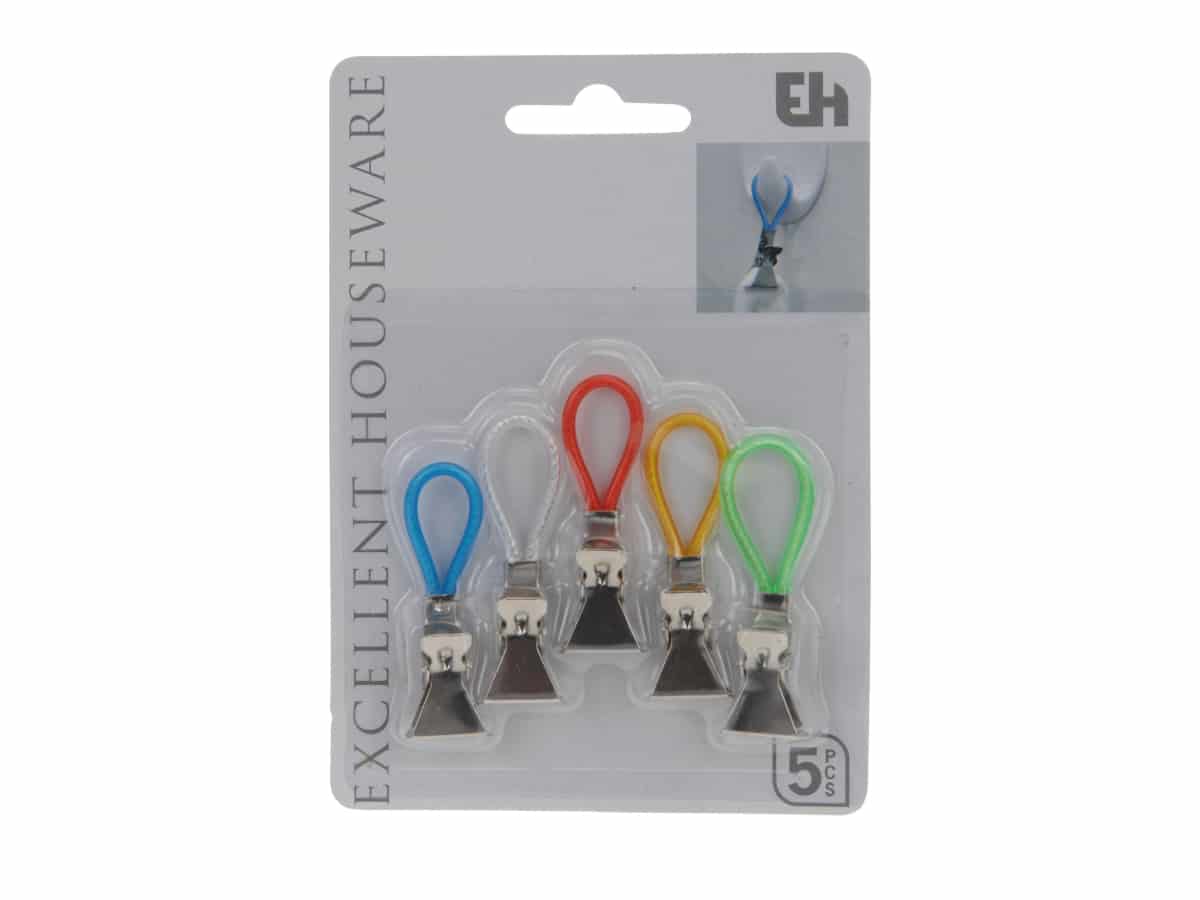 • Klip s magnetem. Používají se na zachytávání vzkazů nebo poznámek. Díky pružným pérům dokáže klips udržet více papírů. Další uplatnění má klips také při praktickém uzavírání otevřených pytlíků v domácnosti. Materiál - magnet, plast. Balení 4 ks. Barvy - modrá, růžová, žlutá, fialová.