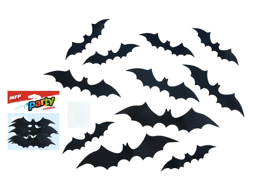 Dodání do 3 pracovních dnů Set samolepky na zeď - 12ks netopýrů PeMi kód: 723430 EAN: 8595138579341 Sada 12 originálních černých samolepek na zeď ve tvaru netopýra v různých velikostech. Rychle a snadno se aplikuje. Tato samolepka na zeď v mžiku oživí Váš obývací pokoj, chodbu či dětský pokoj. Dodáváme v sáčku se závěsem. Uvedená cena je za 1 balení. 52 Kč Do košíku