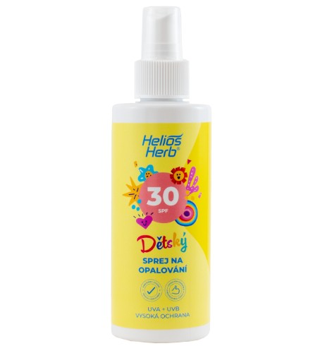 • Helios Herb Dětský sprej na opalování s ochranným faktorem 30 chrání pokožku před spálením sluncem a škodlivým UVA i UVB zářením. Prodlužuje dobu bezpečného pobytu na slunci až třicetkrát.