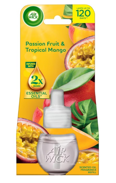 Skladem Airwick Electric 19ml NN Maracuja/mango PeMi kód: 744624 EAN: 5999109546814 Vůně je obohacena o dvojnásobné množství přírodních esenciálních olejů ve srovnání s předchozím složením Air Wick náplně do elektrického přístroje. Vydrží až 120 dní při používání 12 hodin denně na nejnižší úrovni intenzity vůně 86 Kč Do košíku