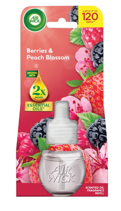 Skladem Airwick Electric 19ml NN Lesní plody/broskvový květ PeMi kód: 744626 EAN: 5999109546845 Užijte si spojení lesních plodů a květů broskvoně, doplněné jemnými tóny citrusů a vanilky, které přináší osvěžující a šťavnatý zážitek. Vůně je obohacena o dvojnásobné množství přírodních esenciálních olejů ve srovnání s předchozím složením Air Wick náplně do elektrického přístroje 86 Kč Do košíku