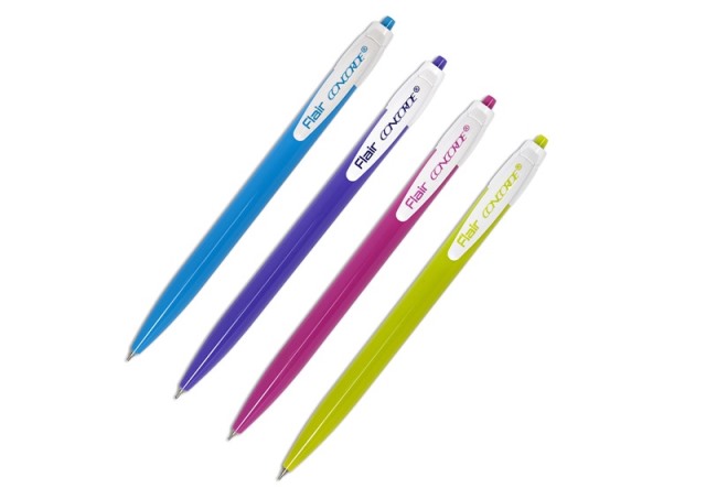 Skladem Kuličkové pero Concorde Ezee Click 0.6 mix PeMi kód: 678823 EAN: 8595097810639 Kuličkové pero ve výrazných barvách. Speciální náplň na olejové bázi pro pohodlné a lehké psaní. Jehlový hrot o šíři 0,6mm. Náhradní náplň Extra Fine. Dodáváno v mixu čtyřech barev: zelená, fialová, růžová, modrá. 9 Kč Do košíku