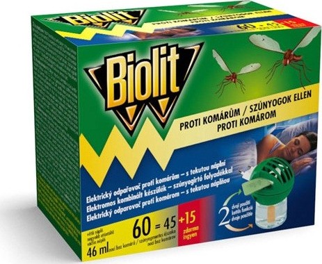 • Biolit elektrický odpařovač se suchou náplní je účinný prostředek proti komárům, který vám zajistí klidný spánek a ochranu doma i na chalupě. Funguje na principu zahřívání polštářků napuštěných insekticidní látkou, která se postupně uvolňuje do vzduchu