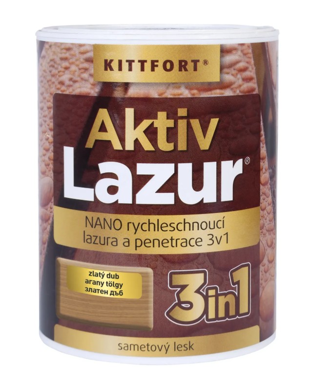 Skladem Aktivlazur Nano 0,75l dub PeMi kód: 521521 EAN: 8595030514242 Aktivlazur Nano 0,75l dub Kittfort Aktivlazur je silnovrstvá vodouředitelná NANO lazura určená k ochranným a dekorativním nátěrům oken, dveří, zárubní, zahradního nábytku, plotů, chat, dřevěných štítů, pergol, podhledů, krovů, obložení stropů apod 267 Kč Do košíku