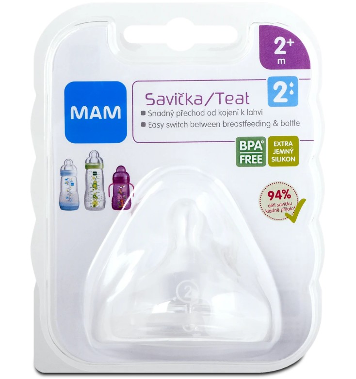 Sleva 37% Skladem 7 ks. Savička střední průtok silikonová, 2m+, 1 ks PeMi kód: 740031 EAN: 9001616281334 vhodná od 2. měsíce věku snadný přechod od kojení k lahvi patentovaný hedvábně měkký povrch dokonalé přizpůsobení dětským ústům MAM savička jemná jako pokožka se středním průtokem se doporučuje používat od 2. měsíce. Savička usnadňuje přechod od kojení k lahvi 109 Kč 69 Kč Do košíku