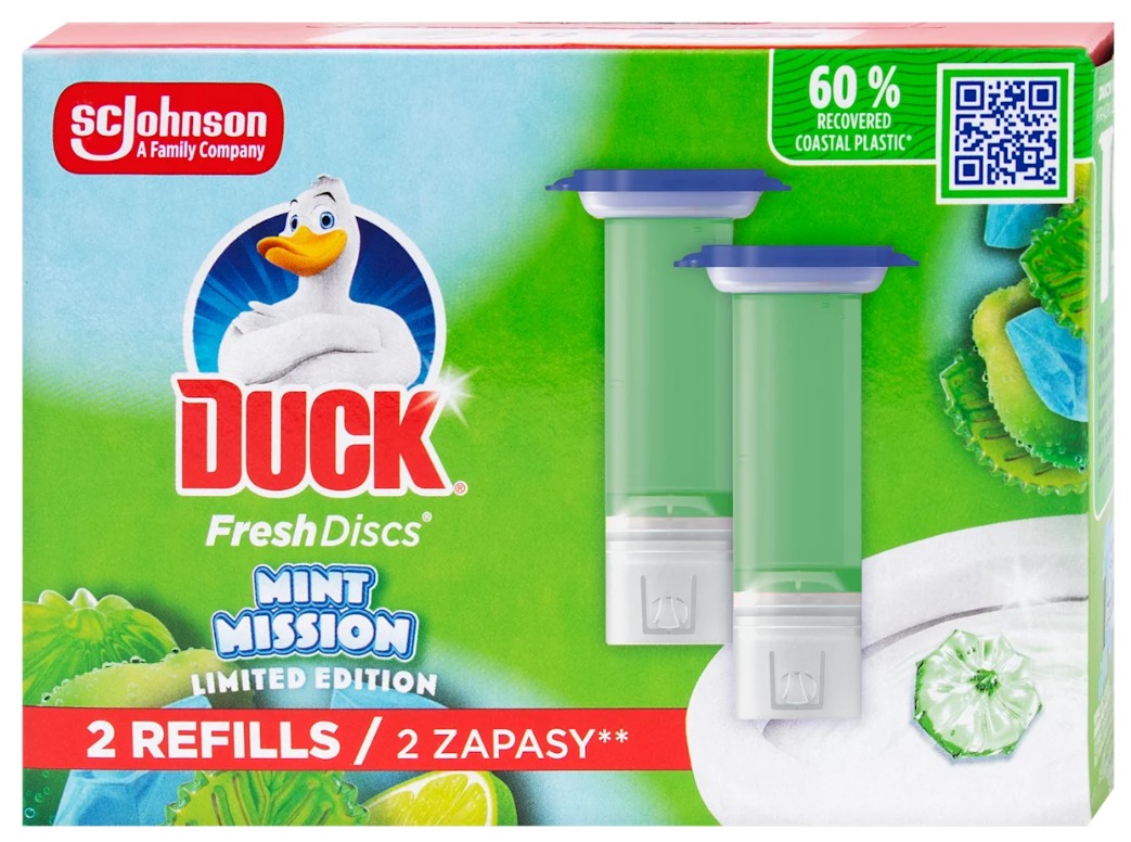 • DUCK WC čistič Fresh Discs Mint náplň nabízí inovativní řešení pro udržení čistoty a svěžesti vaší toalety. Gelové disky se snadno aplikují přímo na vnitřní stěnu mísy, kde působí při každém spláchnutí a pomáhají redukovat tvorbu vodního kamene