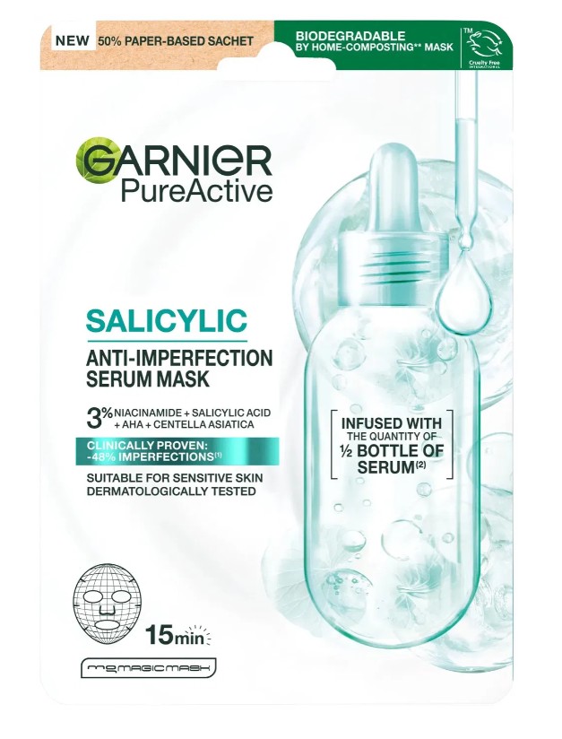 Skladem Gar Pure Active maska 28g Kyselina Salic. PeMi kód: 740171 EAN: 3600542658881 Pleťová maska Garnier Pure Active Salicylic je textilní maska určená pro pleť s nedokonalostmi a otevřenými póry. Obsahuje kyselinu salicylovou a výtažek z tea tree, pomáhající hluboce čistit póry, zmatňovat pleť a redukovat nedokonalosti, aby pokožka působila hladší a viditelně vyčištěná po 60 Kč Do košíku