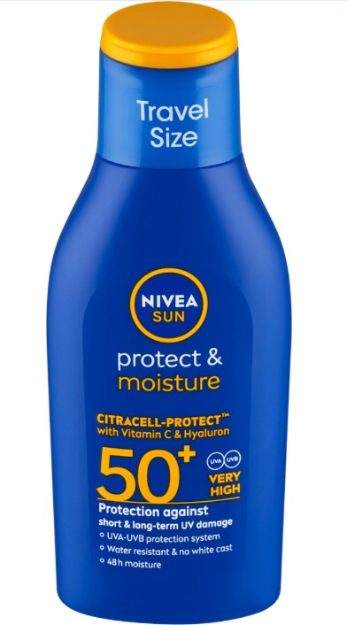 Skladem Nivea Sun cest mléko na op 100ml SPF50+ PeMi kód: 715816 EAN: 42361114 Hydratační tělové mléko Nivea Sun Protect & Moisture s velmi vysokým ochranným faktorem SPF 50+ chrání pokožku před škodlivým UVA i UVB zářením. Díky technologii Citracell Protect™ a obsahu vitamínu C a kyseliny hyaluronové poskytuje intenzivní hydrataci až na 48 hodin 201 Kč Do košíku
