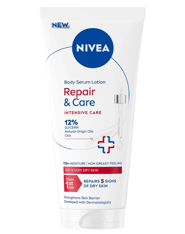 Skladem NIVEA Repair&Care Body Serum Lotion 200 ml PeMi kód: 746570 EAN: 9005800404493 Tělové mléko - hydratační, masážní a vyživující, proti svědění kůže, na suchou pokožku a proti stárnutí pleti, pro citlivou, normální, problematickou, smíšenou a suchou pleť, s přírodními složkami, dlouhotrvající, rychleschnoucí a pro každodenní použití, mezi aktivní látky patří glycerin, svěží 216 Kč Do košíku