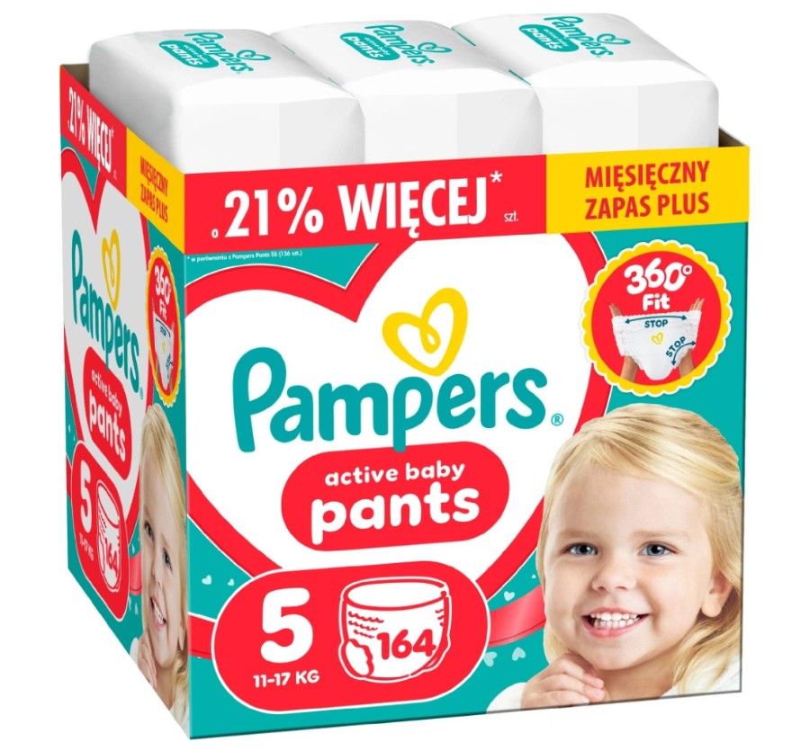 Skladem Pampers Active pants MB S5 164ks - LKW PeMi kód: 746353 EAN: 8006530315722 Pampers Active Baby Pants 5, 164 ks, 11kg-17kg Jakmile začne být vaše děťátko aktivnější, budete potřebovat takovou plenku, která mu pohodlně padne a dokáže je spolehlivě chránit při každém pohybu. Pampers Active Baby Plenkové Kalhotky Velikost 5, 164 Kusů, 11kg-17kg, až 100% suchá noc 1 606 Kč Do košíku