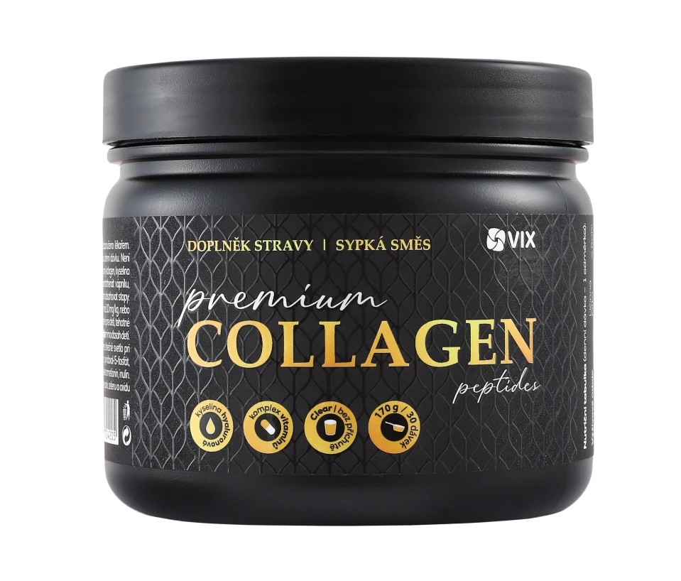 Skladem VIX Collagen Premium sypká směs 170g PeMi kód: 744814 EAN: 8590273724205 VIX Collagen – Síla zdravé krásy v každé dávce Dopřejte svému tělu prémiovou péči s VIX Collagen, komplexním kolagenovým doplňkem obohaceným o vitamíny, minerály a kyselinu hyaluronovou. Kombinace hydrolyzovaného hovězího kolagenu, vitamínu C a zinku podporuje pevnost pleti, pružnost, růst 287 Kč Do košíku