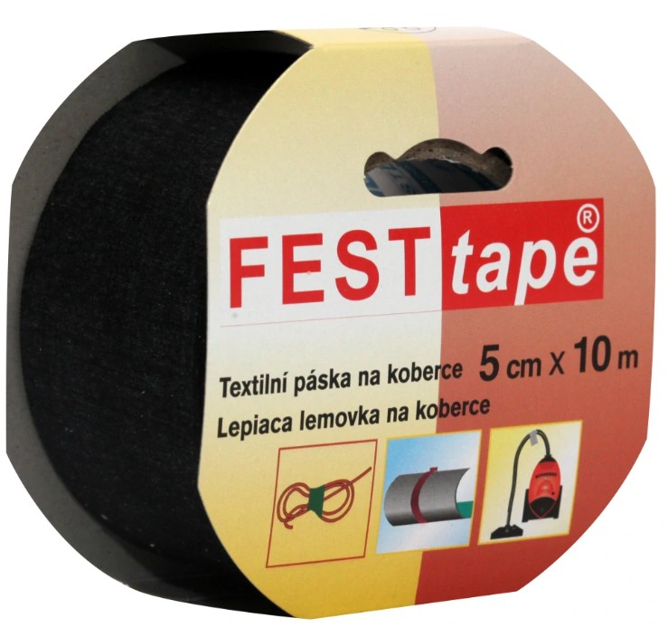 Skladem Festtape Lemovka kobercová páska černá 50 mm × 10 m PeMi kód: 746209 EAN: 8594025310678 Kobercová páska o šířce 50 milimetrů a délce 10 metrů. Univerzální textilní samolepící páska vhodná k olemování a spojování koberců, těžkých materiálů, použití najde v obalové technice i domácnosti. Používá se všude, kde je potřeba pevný a prodyšný spoj 79 Kč Do košíku