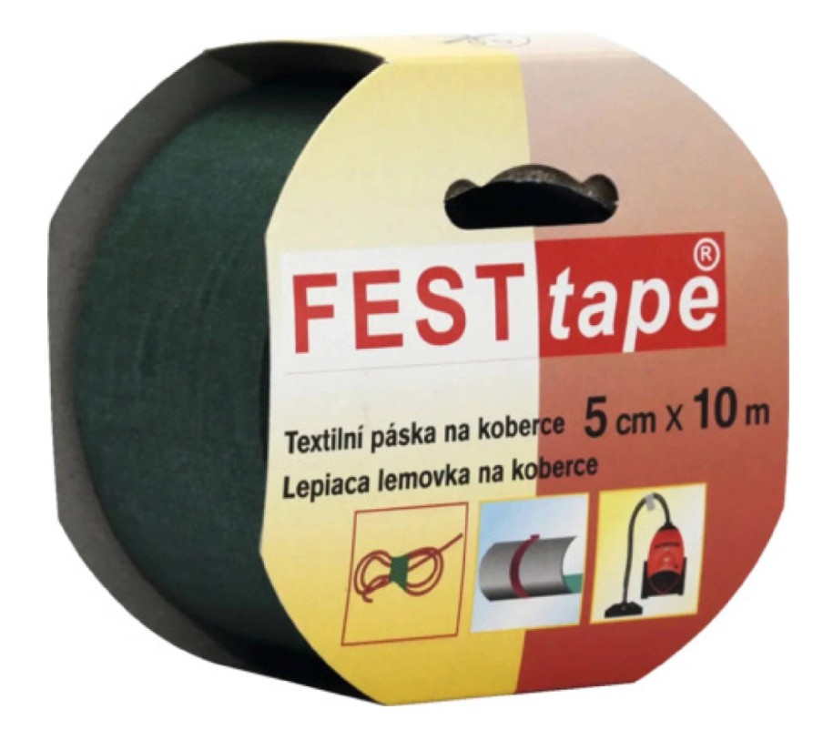 Skladem Festtape Lemovka kobercová páska zelená 50 mm × 10 m PeMi kód: 746211 EAN: 8594025311286 Kobercová páska o šířce 50 milimetrů a délce 10 metrů. Univerzální textilní samolepící páska vhodná k olemování a spojování koberců, těžkých materiálů, použití najde v obalové technice i domácnosti. Používá se všude, kde je potřeba pevný a prodyšný spoj 79 Kč Do košíku