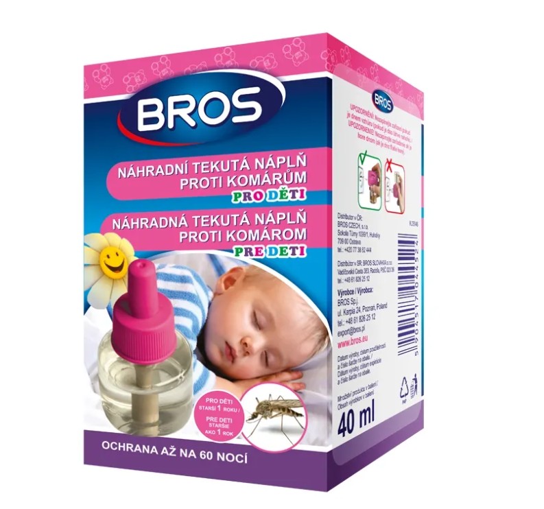 Skladem BROS Náhradní tekutá náplně do odpařovače proti komárům pro děti 60 nocí PeMi kód: 745130 EAN: 5904517044524, 5904517405660 Bros náhradní tekutá náplně do odpařovače proti komárům pro děti, je určená k ochraně proti komárům v domácnostech s dětmi staršími 1 roku. Insekticidní páry z náplně chrání místnost před komáry po celou noc. Vydrží po dobu 60 nocí. 153 Kč Do košíku