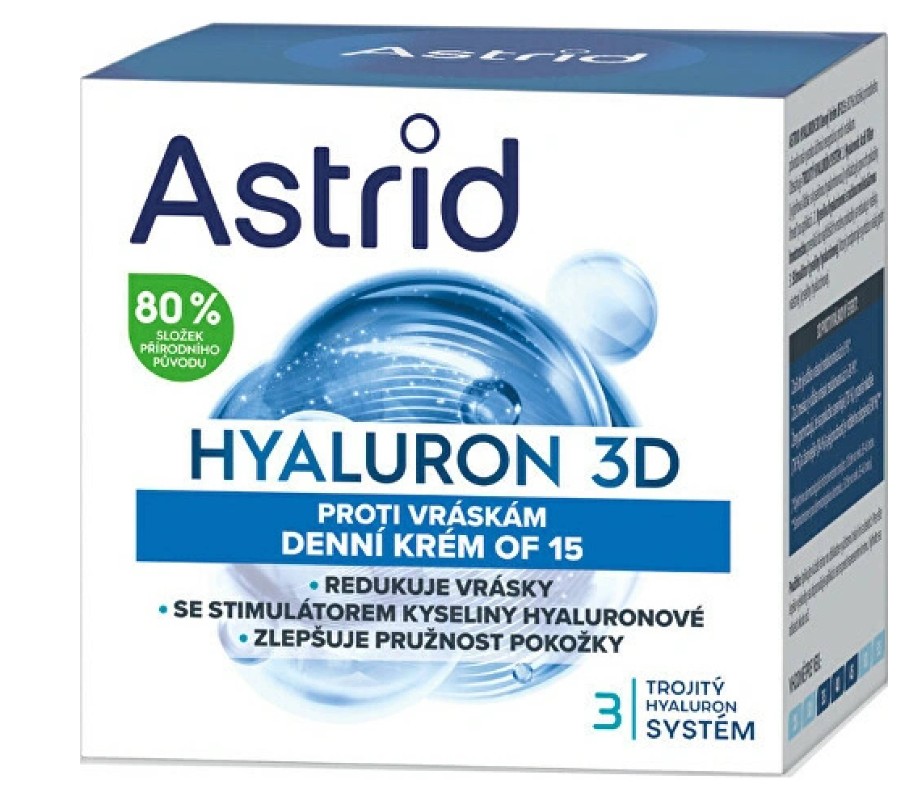 Skladem Astrid Hyal D kr m proti vrs SPF15 50ml PeMi kód: 746261 EAN: 8592297011996 Denní pleťový krém proti vráskám SPF 15 Hyaluron 3D s 80 % ingrediencí přírodního původu má vysoce účinnou recepturu proti vráskám. 3D PROTIVRÁSKOVÝ EFEKT: Za 6 dní je délka vrásek redukována až o 8 %*. Za 1 měsíc je délka vrásek redukována až o 24 %* 209 Kč Do košíku
