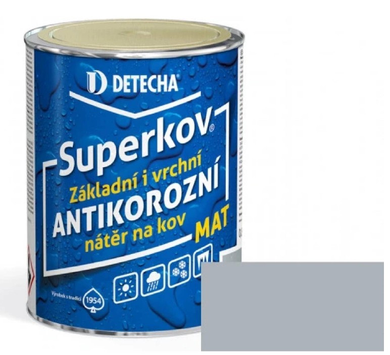 Skladem Detecha Superkov Satin 2v1 základní i vrchní barva na kov, pololesk, Ral 7016 šedý antracid, 5 kg PeMi kód: 160703 EAN: 8595002327252 Detecha Superkov Satin 2v1 základní i vrchní barva na kov je nově vyvinutá nátěrová hmota hedvábně lesklého vzhledu v atraktivní moderní barevné škále. Jedná se o základní i vrchní nátěr v jednom , který poskytuje kromě atraktivního vzhledu také dokonalou antikorozní ochranu 1 510 Kč Do košíku
