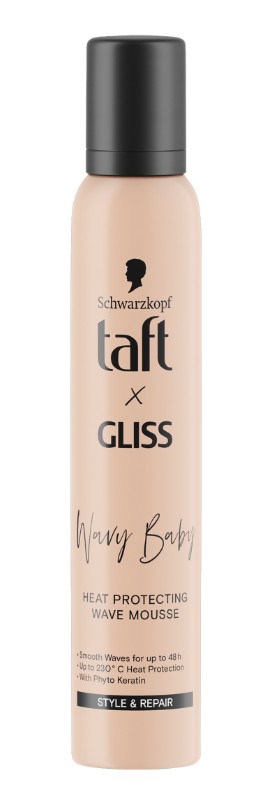 Skladem TaftxGliss pěna 200ml Wavy Baby PeMi kód: 740720 EAN: 9000101775600 Pěna pro vlnité vlasy s tepelnou ochranou kombinuje styling a péči s technologií Gliss Care & Repair s phytokeratinem a panthenolem pro rovné, vlnité a kudrnaté vlasy. Zajišťuje hladké vlny až na 48 hodin. Tepelná ochrana až do 230° C. Bez zatvrdnutí, slepení a zatížení vlasů. 170 Kč Do košíku