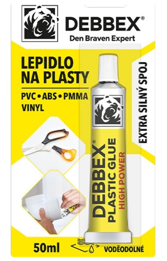Skladem Debbex lepidlo na plast 50ml PeMi kód: 742077 EAN: 8595728332387 Lepidlo speciálně vyvinuté pro lepení plastů, včetně ABS, PVC, PC a PMMA. Ideální pro použití na měkčený i tvrzený vinyl. Nabízí rychlou přilnavost a snadnou aplikaci, přičemž po vytvrzení zůstává permanentně pružné 86 Kč Do košíku