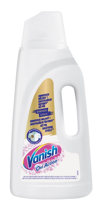 Skladem Vanish Oxi Action Gel pro bělení a odstranění skvrn 750ml PeMi kód: 616981 EAN: 5999109561107 Odstraňovač skvrn a gel pro bělení prádla Vanish Oxi Action si poradí s odolnými skvrnami na bílém a světlém oblečení. Při pravidelném používání udržuje prádlo zářivě bílé a to i po 50. vyprání. Pouhá jedna odměrka prostředku Vanish odstraňuje skvrny, minimalizuje nepříjemný zápach a dodává 108 Kč Do košíku