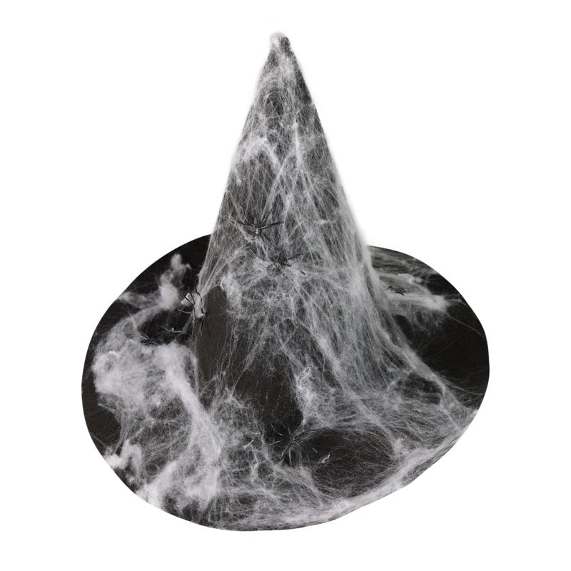 • Čarodějnický klobouk s pavučinou, která vypadá jako opravdová! Klobouk černé barvy je potažen pavučinou a mini pavouky. Klobouk je vyroben z filcu. Perfektní doplněk na Halloween párty nebo karneval! Rozměry balení: 375 × 330 × 375 mm.