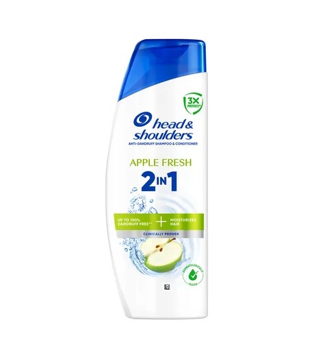 • Head & Shoulders 2in1 Apple Fresh šampon proti lupům pro všechny typy vlasů a všechny typy pokožky hlavy. Působí i proti odolným lupům. Šampon pro každodenní použití pro muže i ženy se složením Microbiome Balance, které se zaměřuje na hlavní příčinu lupů a udržuje vyvážený mikrobiom pokožky