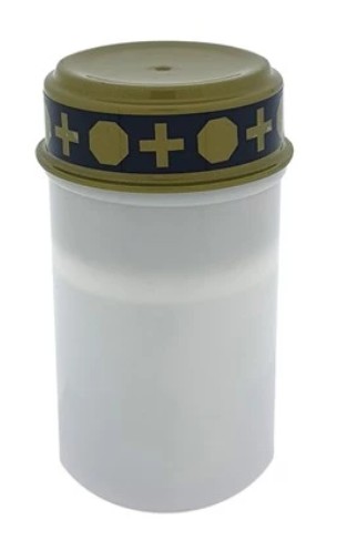 Dodání do 5 pracovních dnů svíčka HŘBITOVNÍ s víčkem 135g ,v12cm PeMi kód: 732126 EAN: 8591570039702 Plastová hřbitovní svíčka s náplní 120g lisovaného parafínu s kovovým vrškem. Zapalujte pouze na nehořlavé podložce, určeno pro venkovní použití. 30 Kč Do košíku