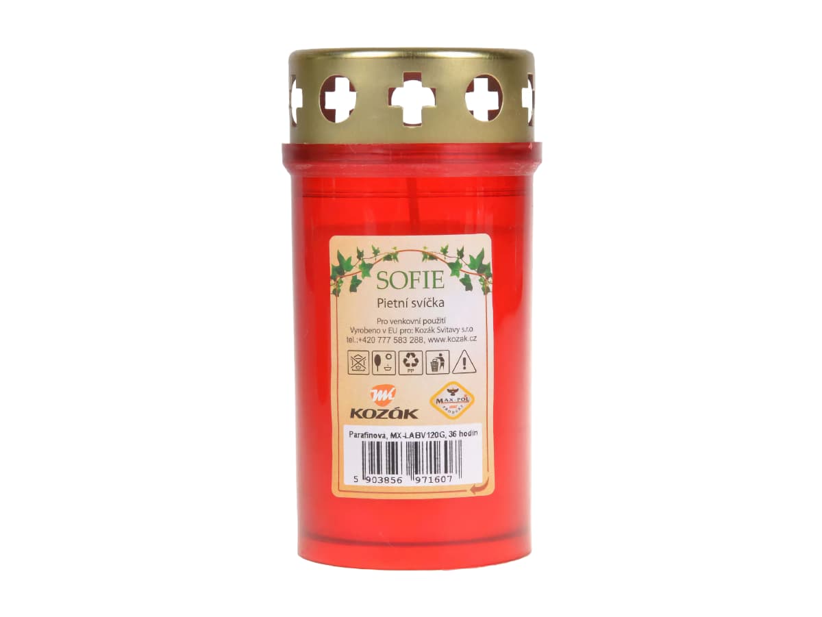 Dodání do 5 pracovních dnů svíčka HŘBITOVNÍ olejová SOFIE 120g ČERVENÁ 9,5cm PeMi kód: 690611 EAN: 8591570073911 Svíčka s přídavkem oleje. Vyniká mimořádně dlouhou dobou hoření až 1,5-2 dny. Doba hoření závisí na klimatických podmínkách. Určeno pro venkovní použití. 21 Kč Do košíku