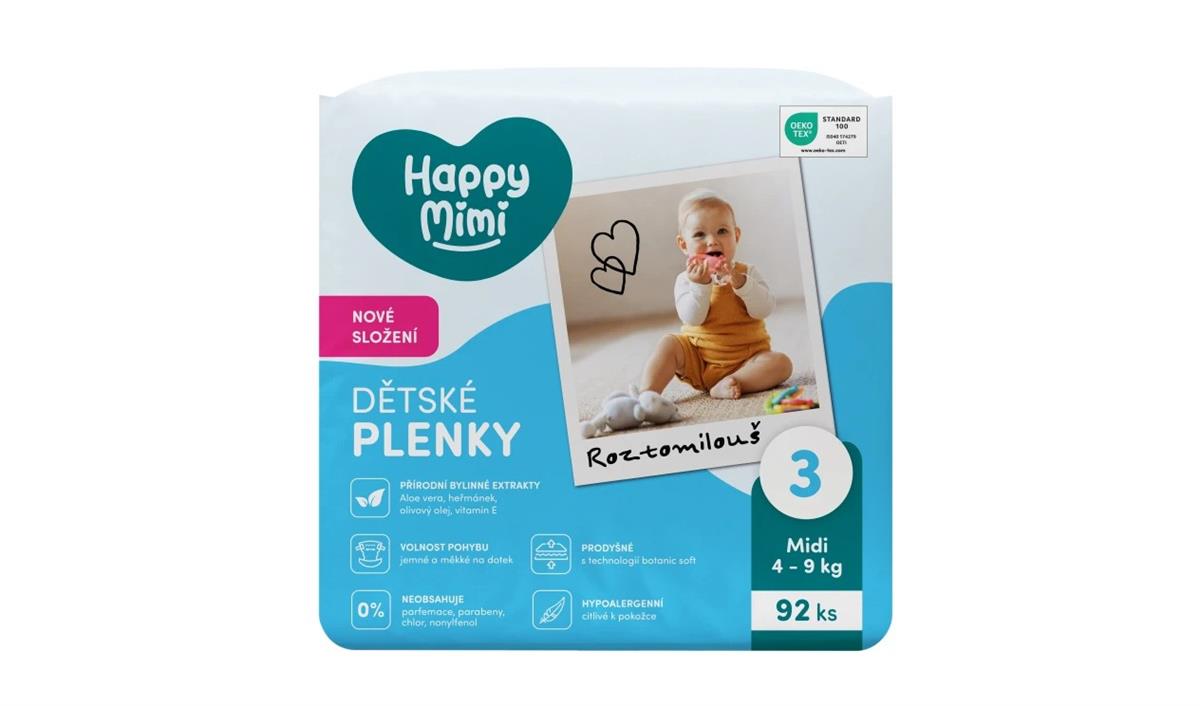 Skladem Happy Mimi Dětské plenky 3 Midi, 46 ks PeMi kód: 734121 EAN: 8590273647139 Happy Mimi – Nové dětské plenky s přírodní péčí Objevte nové jednorázové plenky Happy Mimi s inovativním složením, které spojuje jemnost, bezpečí a přírodní sílu bylin. Díky extraktům z Aloe vera, heřmánku, olivového oleje a vitaminu E poskytují šetrnou péči dětské pokožce 185 Kč Do košíku