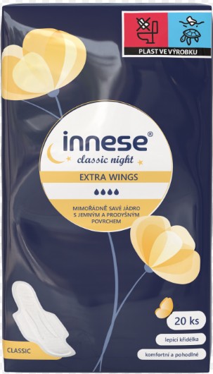 Skladem Innese Classic s křid (20ks/kra) NIGHT PeMi kód: 712151 EAN: 8590273645289 Dámské hygienické vložky anatomického tvaru s křidélky mají jemný a prodyšný povrch. Díky prodloužené délce a praktickým křidélkům drží bezpečně na svém místě a zabraňují protečení. Poskytují jistotu a klidný spánek každou noc. 59 Kč Do košíku