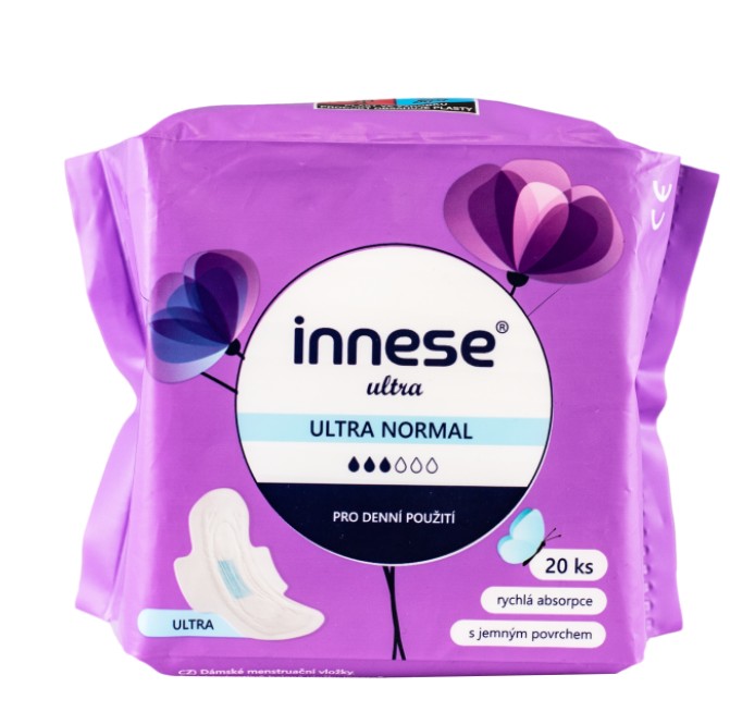 Skladem innese ULTRA NORMAL hygienické vložky s křidélky 20 ks PeMi kód: 713381 EAN: 8590273645340 Dámské menstruační vložky innese. Tenké, jednotlivě balené hygienické vložky vhodné pro denní použití. S jemným povrchem a savým jádrem pro dokonalý pocit sucha a čistoty. • Modrý odváděcí čip, který urychluje absorpci • Boční okraje zabraňují protečení • Jemný povrch • Délka 240 mm 49 Kč Do košíku