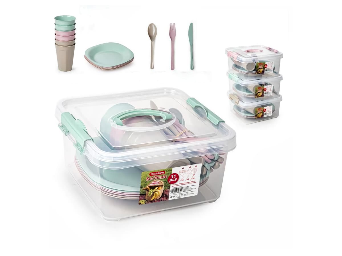 Dodání do 5 pracovních dnů pikniková sada SURT (31ks) UH PeMi kód: 714179 EAN: 8414926648390 Sada se skládá ze 6 talířů, 6 sklenic a 6 sad příborů, každá se skládá z nože, vidličky a lžíce. Má také krabici s uchem, takže jej můžete snadno skladovat a přepravovat. Tato pikniková sada obsahuje vše, co potřebujete pro strávení dne s rodinou nebo přáteli na venkově, na pláži nebo kdekoli 384 Kč Do košíku