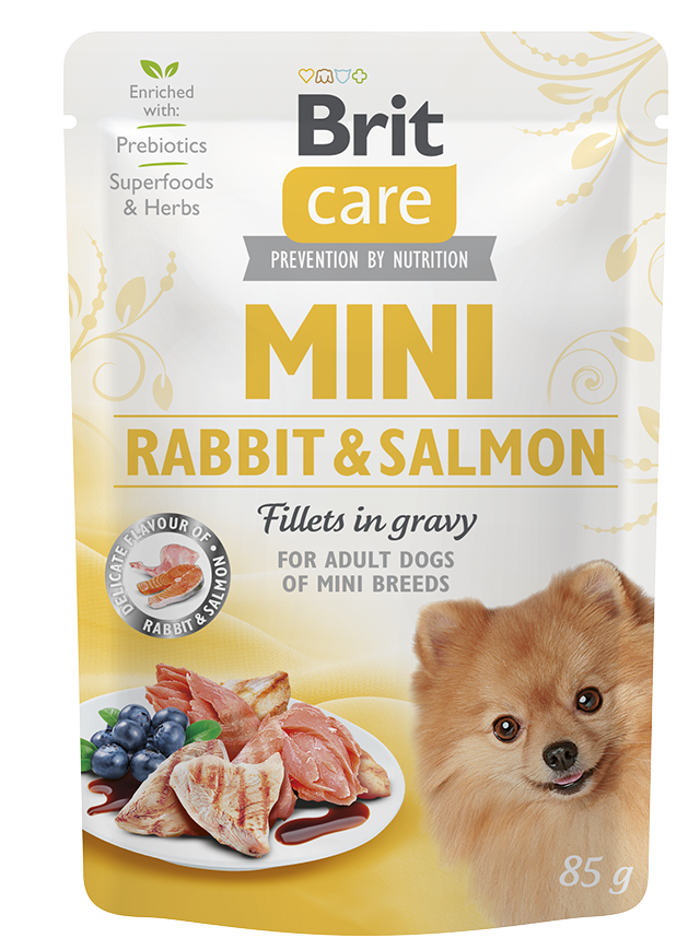 Skladem Brit Care Mini Rabbit & Salmon fillets in gravy 85g PeMi kód: 724862 EAN: 8595602560332 Prevence výživou pro malé velké lásky Vysoká chutnost Superpotraviny – obsahuje rozmarýn, kurkumu, hřebíček, citrusy a borůvky Obohaceno o prebiotika pro dobré trávení Hypoalergenní <span 30 Kč Do košíku
