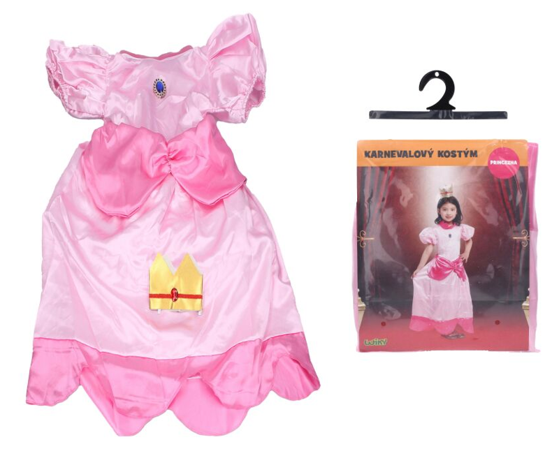 • Set karneval princezna. Pro děti o velikosti 110-120 cm. Součásti kostýmu: šaty, korunka.