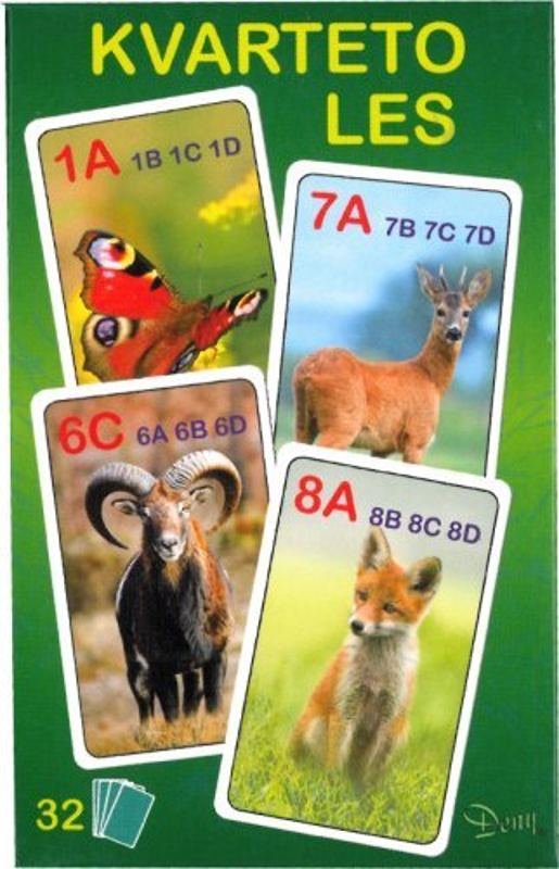 Skladem Kvarteto Les PeMi kód: 721261 EAN: 8588001170677 Klasická karetní hra kvarteto s motivem zvířátek z lesa. Kvarteto je hra, kde hráči tahají karty jeden od druhého a skládají z nich čtveřice. Vítězem se stává hráč, který nemá v ruce žádné karty a na stole má nejvíce „kvartet“. S touto oblíbenou karetní hrou se zaručeně nebudeš nudit! 44 Kč Do košíku