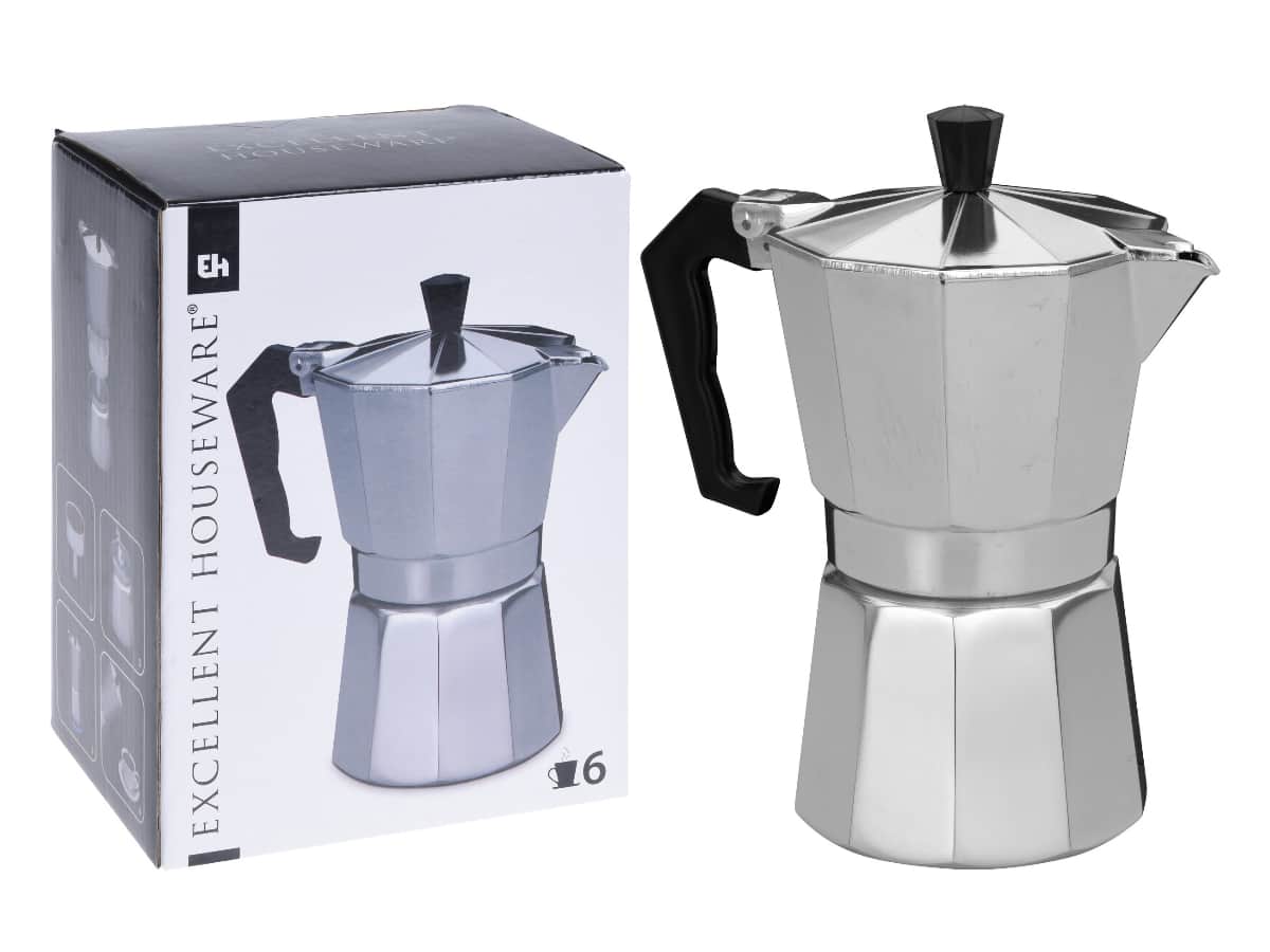 • Tradiční hliníkový kávovar pro výrobu výborné domácí kávy. Jednoduchý způsob přípravy velmi blízký espresso, ovšem za zlomkové náklady. Kávovar má objem 300 ml.Návod k přípravě:1. namelte kávu na střední, až jemnější stupeň2