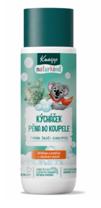 • Kneipp pěna do koupele Kýcháček se speciální recepturou, která zahřívá tělo i dýchací cesty během chladných dní. Složení s tymiánem, šalvějí a eukalyptem vykouzlí uvolňující zážitek. Receptura bez mikroplastů s 98 % biologicky odbouratelných složek barví vodu na zeleno. Vhodná pro vegany