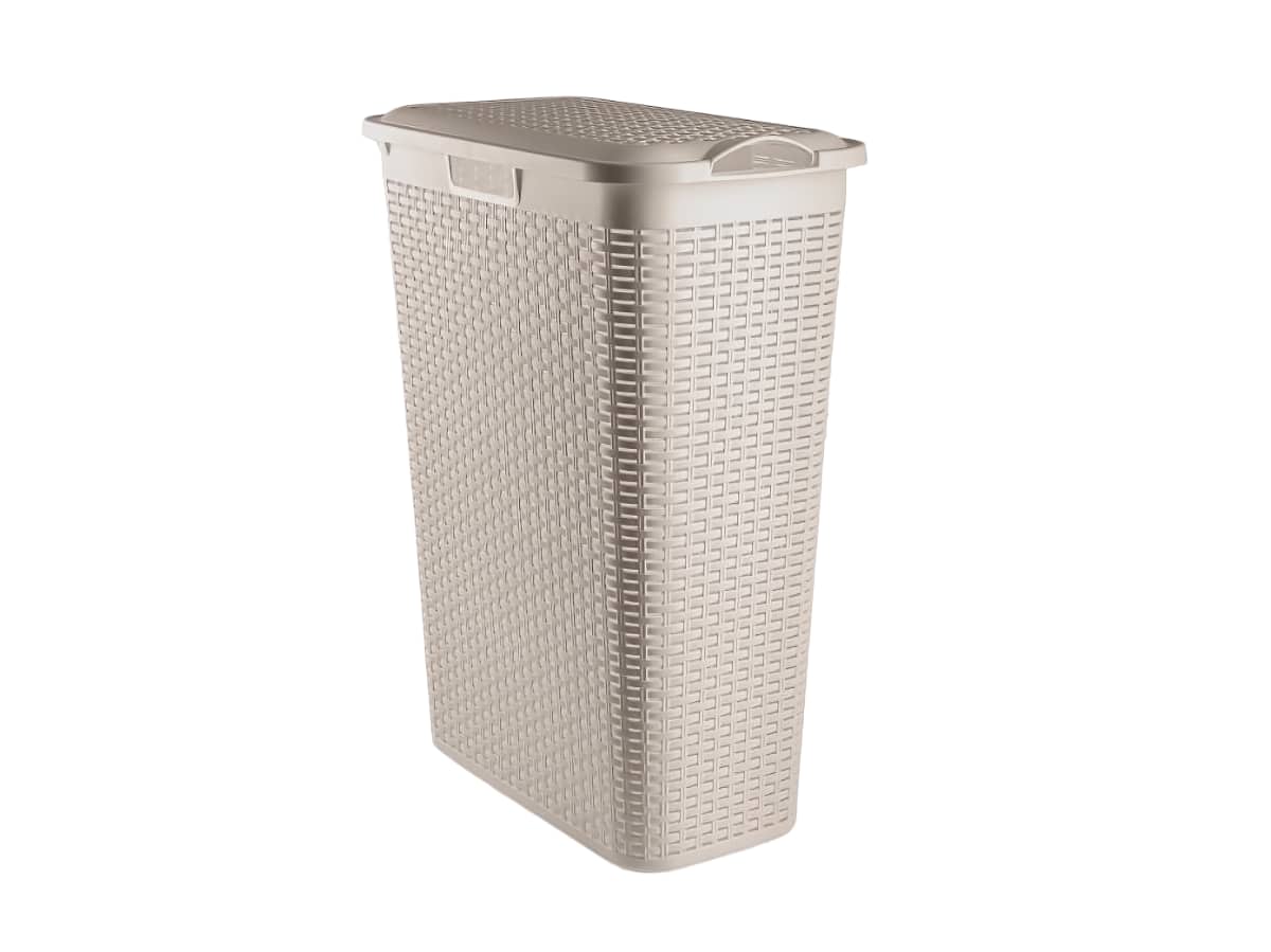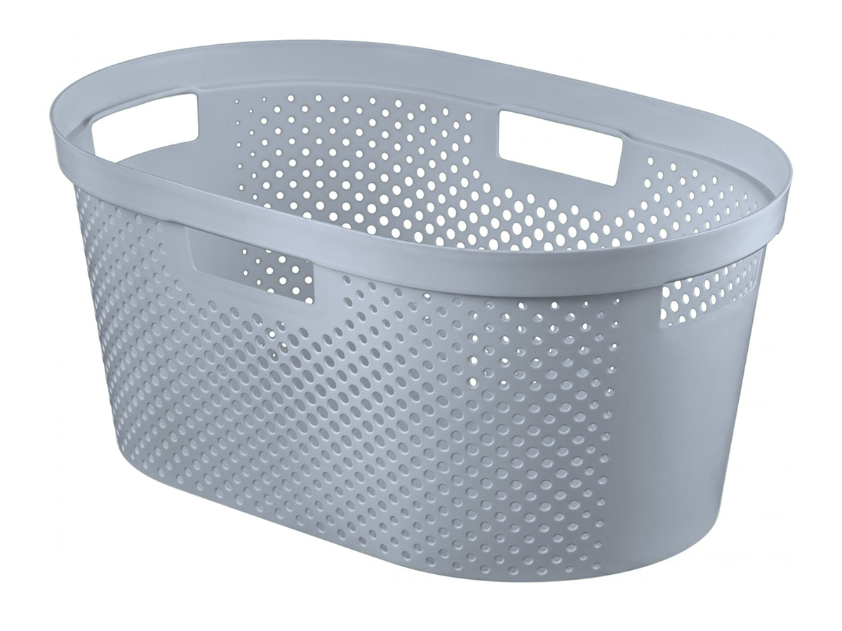 • Koš na špinavé prádlo o objemu 50 l, s jednoduchým lehkým víkem, které umožňuje přikrytí špinavého prádla ve Vaší koupelně. Tvarovaná madla umožňují přenesení koše na libovolné místo. Koš na prádlo je velmi lehce omyvatelný od nečistot. Designové mřížky umožňují větrání prádla v koši