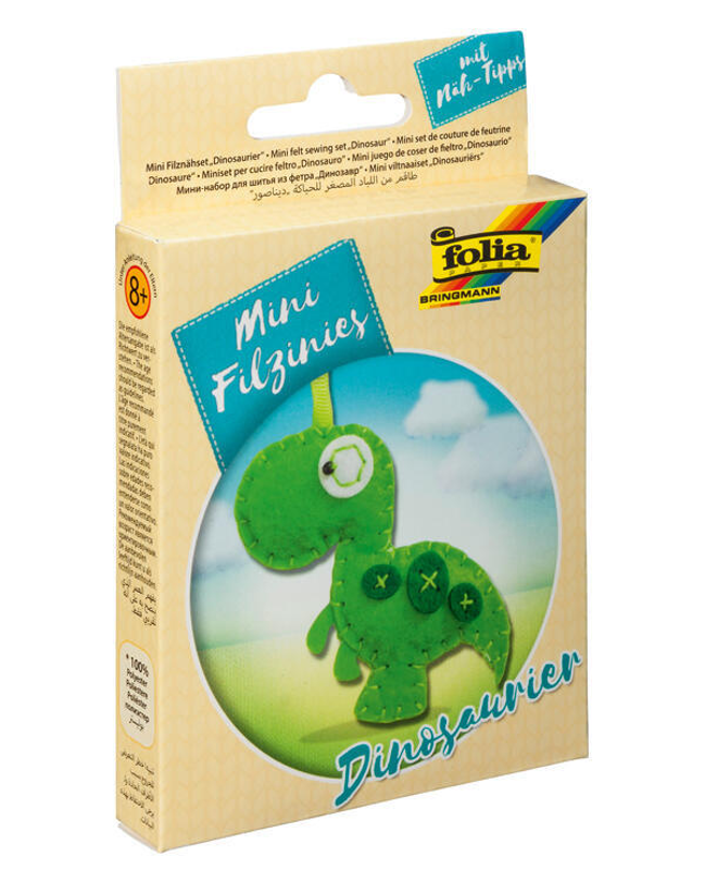 Skladem Kreativní set šití Dinosaurus PeMi kód: 714476 EAN: 4001868104745 Sada na výrobu zvířátka z filcu obsahuje filc, výplňovou vatu, bavlnky, knoflíky a různé ozdoby, střih. Rozměr: 10 x 6 cm. 68 Kč Do košíku