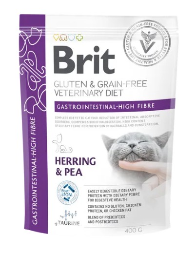 Skladem Brit VD Cat GF Gastrointestinal High Fibre 400g PeMi kód: 730584 EAN: 8595602573646 Kompletní dietní krmivo pro kočky. Omezení střevních resorpčních onemocnění, kompenzace maldigesce, vysoký obsah dietní vlákniny pro prevenci tvroby chlupových bezoárů. Indikace: Úleva od zažívacích obtíží při akutní gastroenteritidě Vysoký obsah vlákniny pro průjmy 165 Kč Do košíku